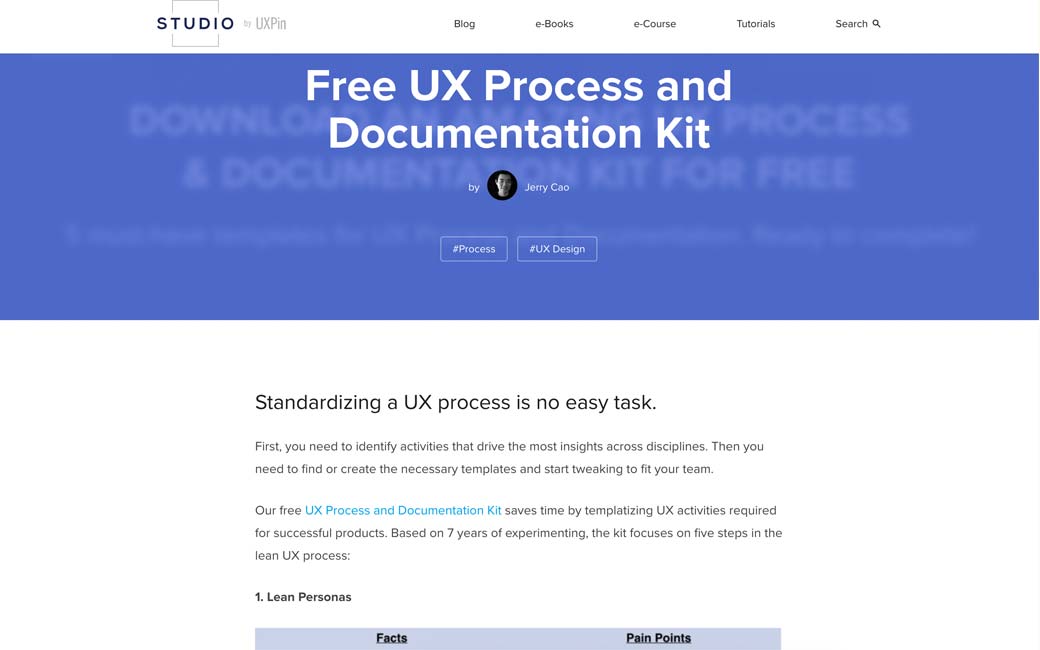 Free UX Process and Documentation Kit, un kit UX avec différents livrables à adapter pour vos projets