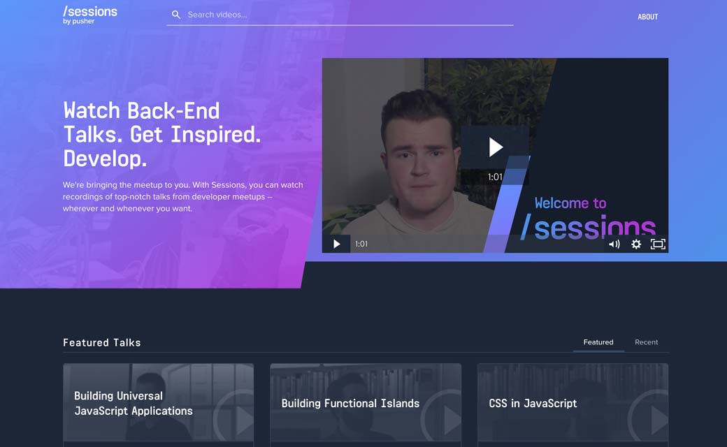 Sessions rassemble des videos de conférence meetup front-end, back-end et créatives