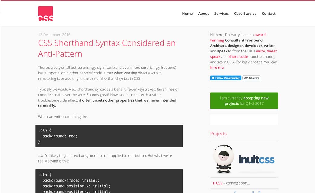 CSS Shorthand Syntax Considered an Anti-Pattern par @csswizardry, parfois utiliser les propriétés raccourcies peut engendrer des soucis plus tard dans le code