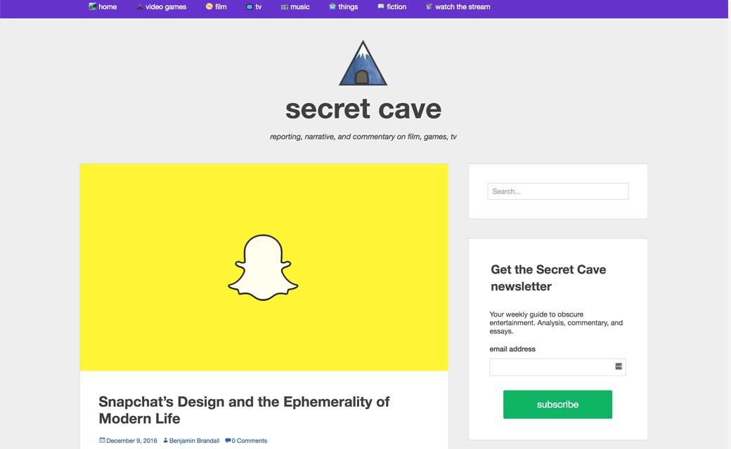 Snapchat’s Design and the Ephemerality of Modern Life — secret cave, un autre article sur le design plutôt non conventionnel de Snapchat
