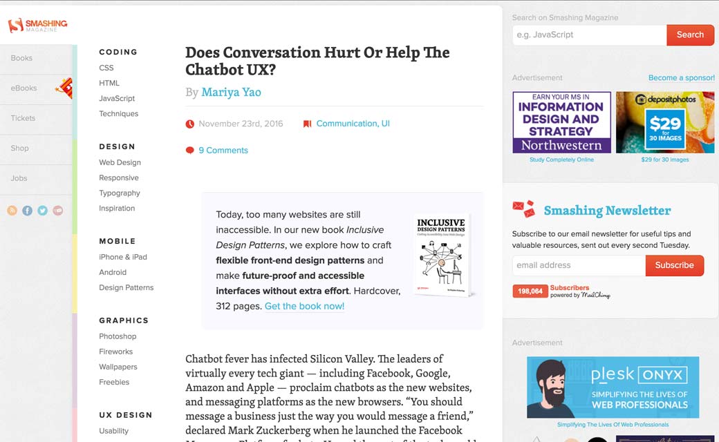Does Conversation Hurt Or Help The Chatbot UX? un article intéressant sur les chatbots