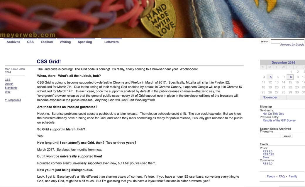 CSS grid is coming in March 2017!! CSS grid arrive en mars non préfix dans les navigateurs et tout navigateur qui comprends grid comprendra @supports() donc plus d’excuse pour ne pas l’utiliser