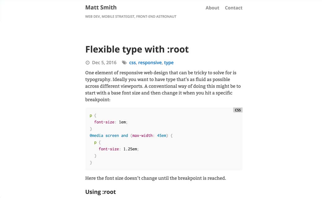 Article intéressant sur comment utiliser :root pour faire de la typographie responsive