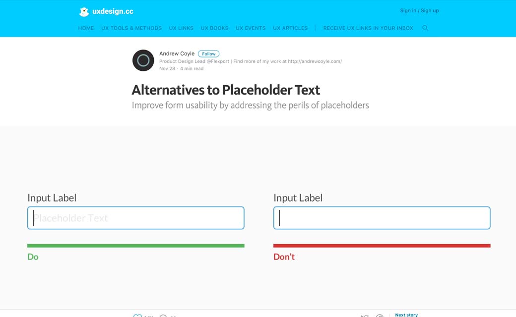 Alternatives to Placeholder Text – plus je lis d’articles sur les placeholders, plus je me demande s’il existe des cas d’usage ou ca posera pas de soucis