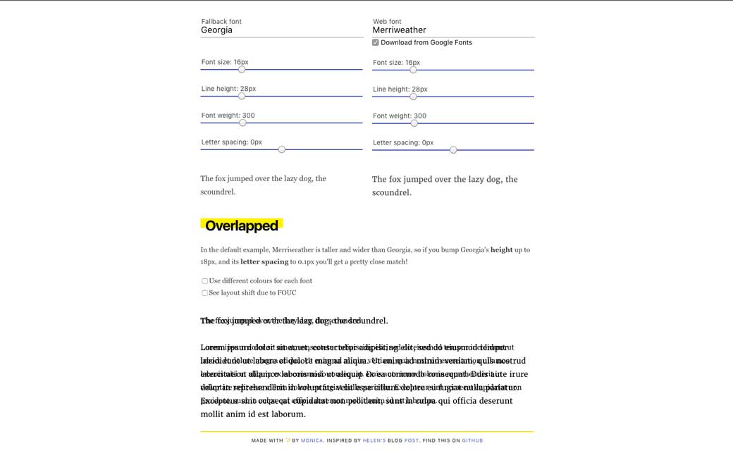 Font-style-matcher, un petit outil pour tester la superposition de deux polices au chargement (FOUC) pour proposer des fallbacks
