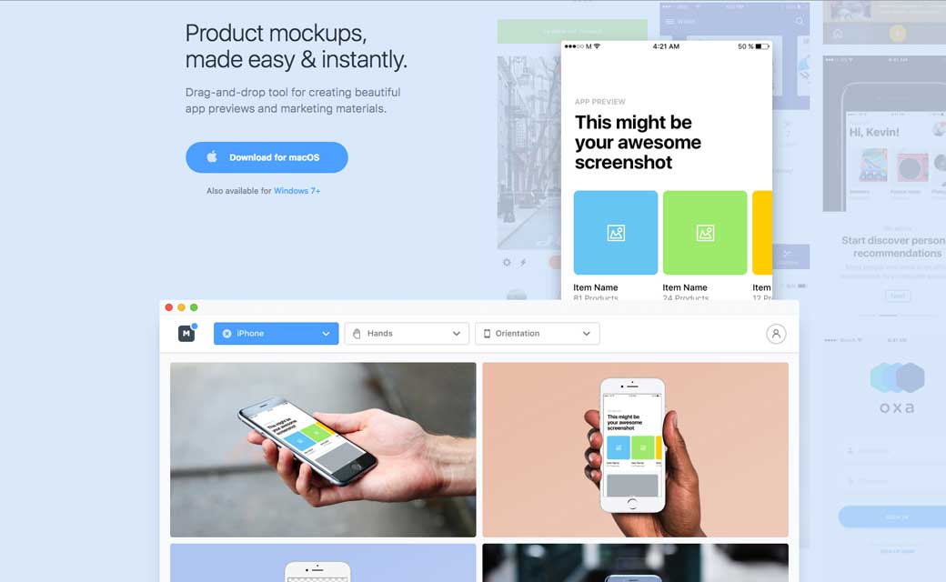 mockuuups.studio un petit outil pour présenter des maquettes mobiles dans des faux Iphones avec des mains :D