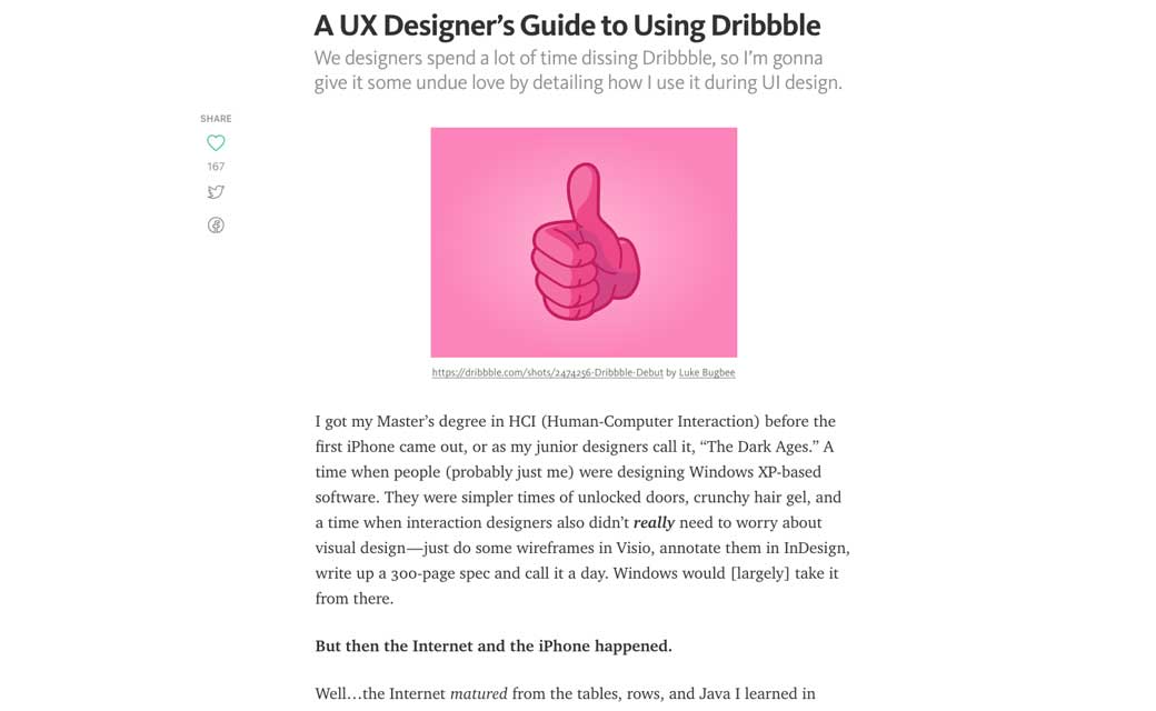 A UX Designer’s Guide to Using Dribbble, quelques conseils pour utiliser dribbble en tant que UX designer, je fais un peu pareil sur la partie UI pattern :)