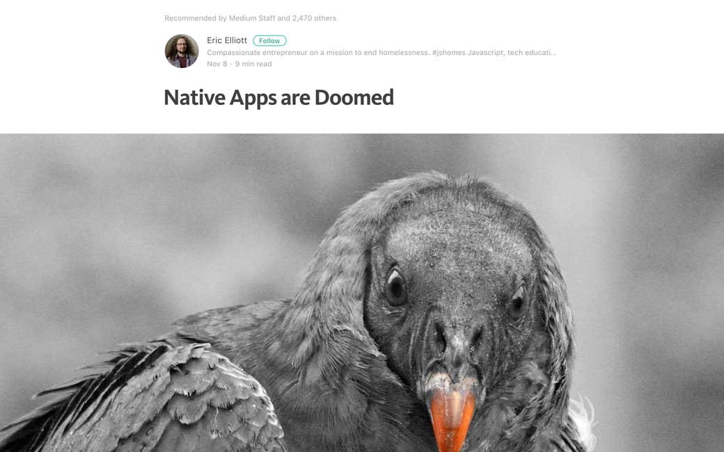 Native Apps are Doomed, une analyse intéressante sur la construction de progressive web apps et comment elles peuvent remplacer des applications natives