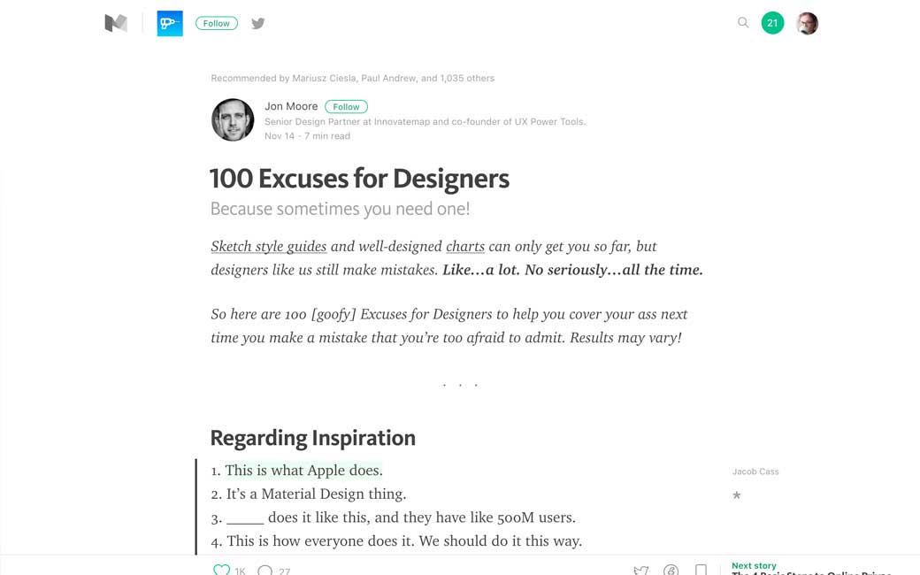 100 Excuses for Designers, pour vous aider la prochaine fois que vous faites une bêtise ^^