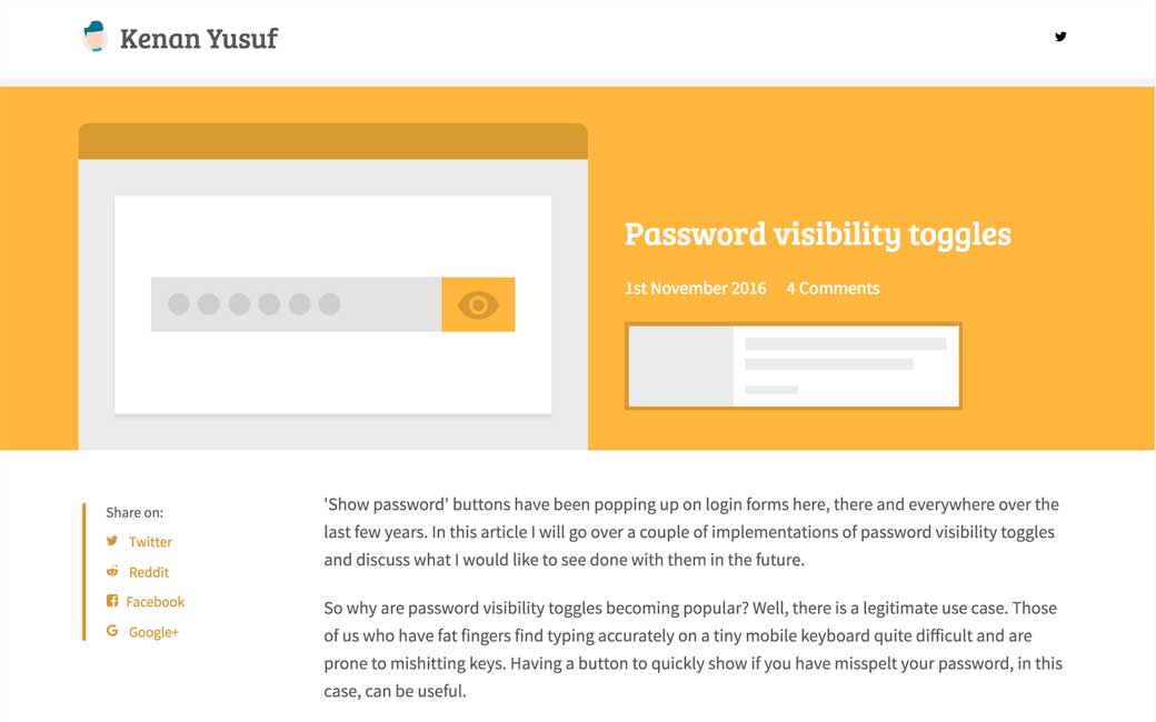 Password visibility toggles, pas super convaincue par le 1e exemple par contre, j’ai peur que les utilisateurs confondent cette checkbox avec la checkbox “ se souvenir de moi ” qui se trouve souvent à cet emplacement