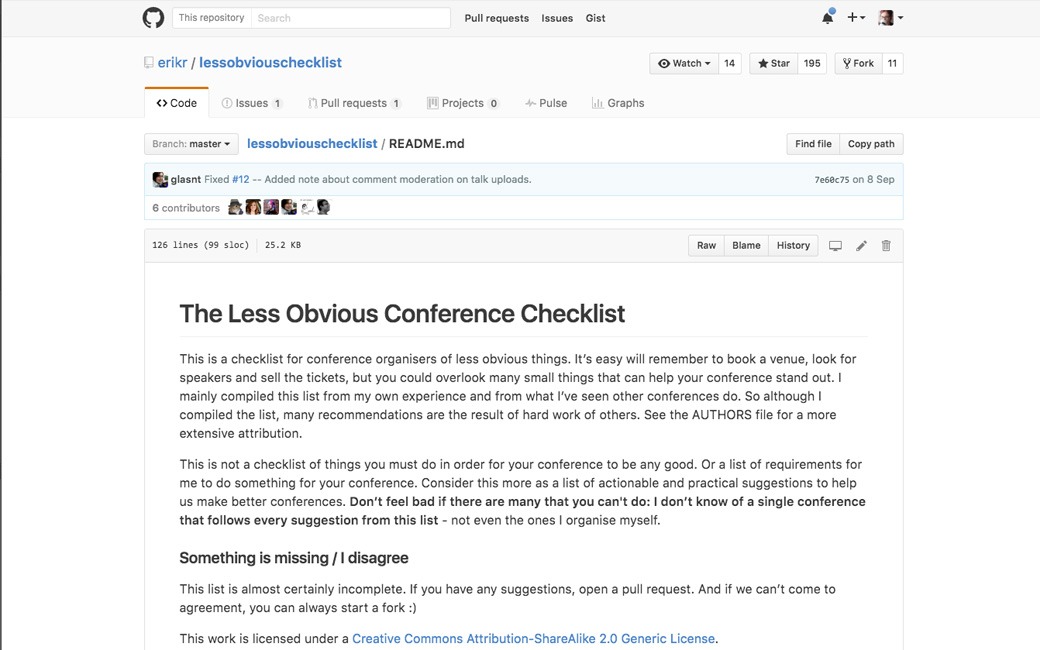 The Less Obvious Conference Checklist, une petite check liste de bonnes idées pour améliorer nos conférences