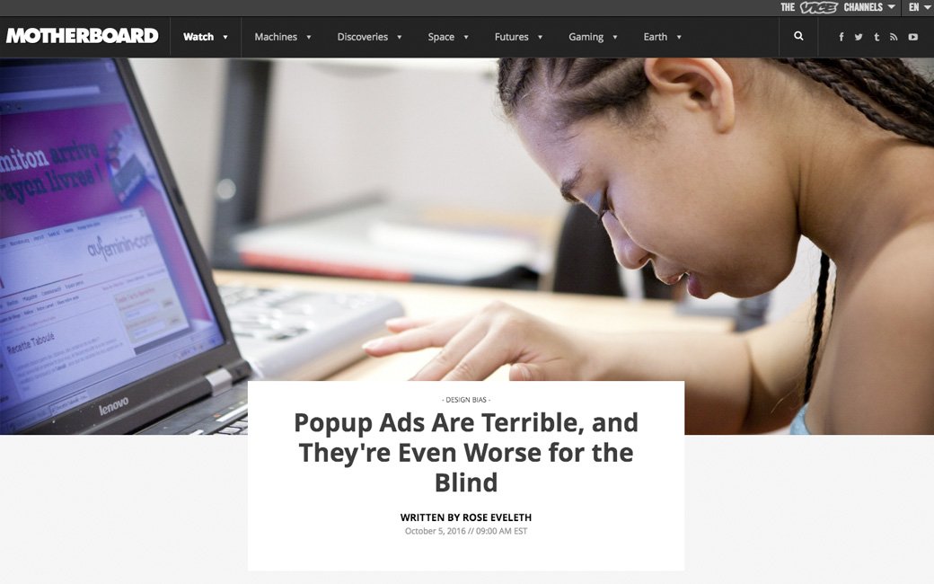 Popup Ads Are Terrible, and They’re Even Worse for the Blind, les publicités en pop-up, la plaie des lecteurs d’écran et personnes aveugles
