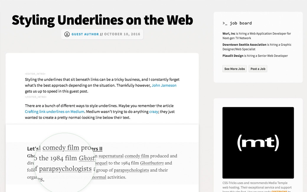 Styling Underlines on the Web, styler de manière un peu plus sympa les soulignements des liens