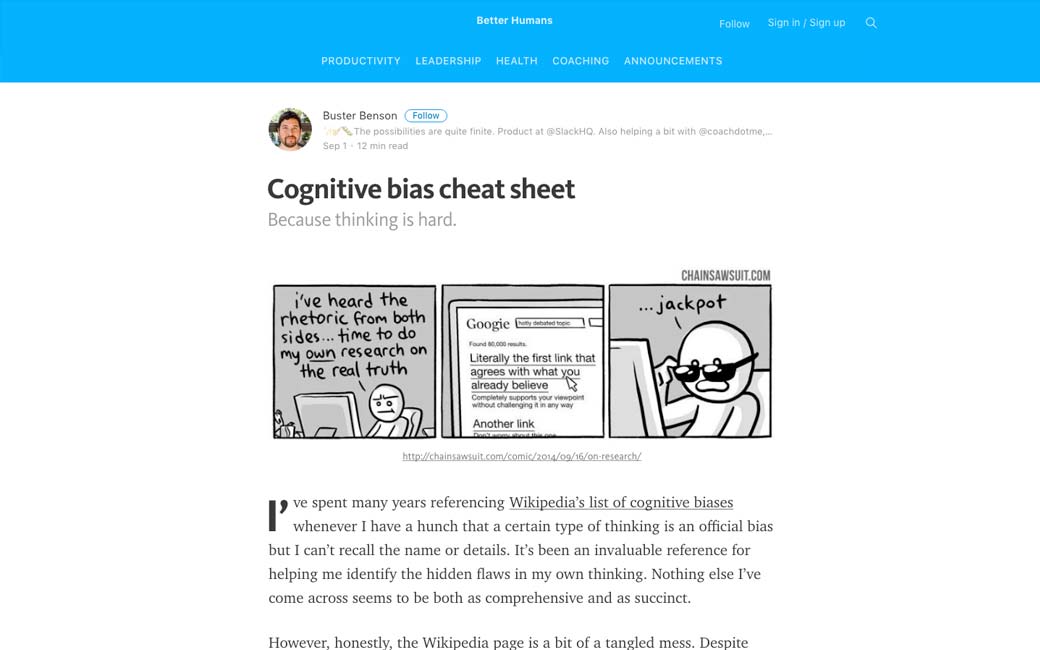 Cognitive bias cheat sheet, un article sur les biais cognitifs