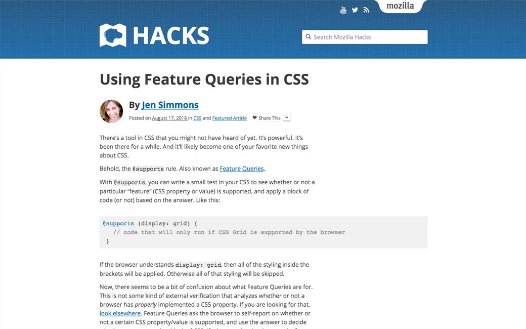 Using Feature Queries in CSS, utiliser les feature queries en CSS pour détecter si un navigateur supporte une propriété et valeur
