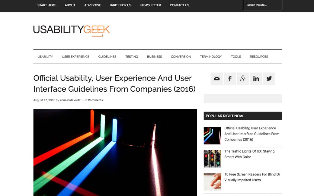 Official Usability, User Experience And User Interface Guidelines From Companies (2016), les guidelines UX et UI officielles de grosses entreprises et produits