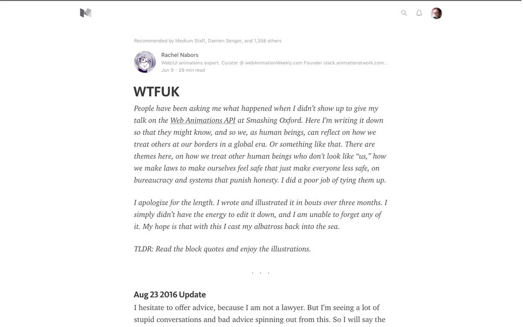 WTFUK, l’histoire bien triste de Rachel Nabors, une conférencière américaine qui s’est refusé l’accès à l’entré du territoire britannique alors qu’elle venait donner une conférence et s’est retrouvée déportée à New York alors qu’elle habite à Portland.