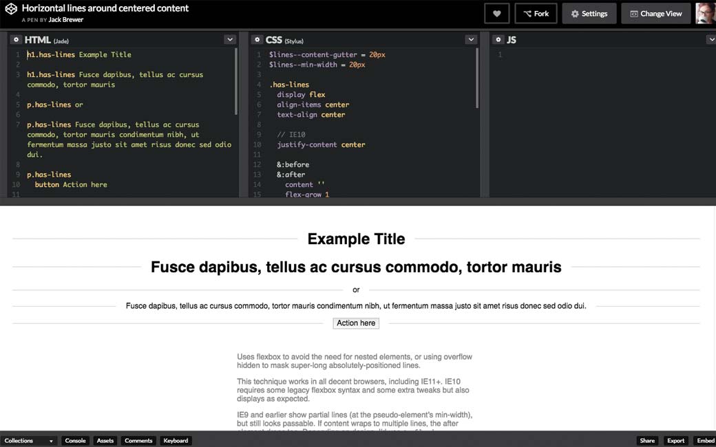 Horizontal lines around centered content, de jolies lignes centrées autour du texte en CSS
