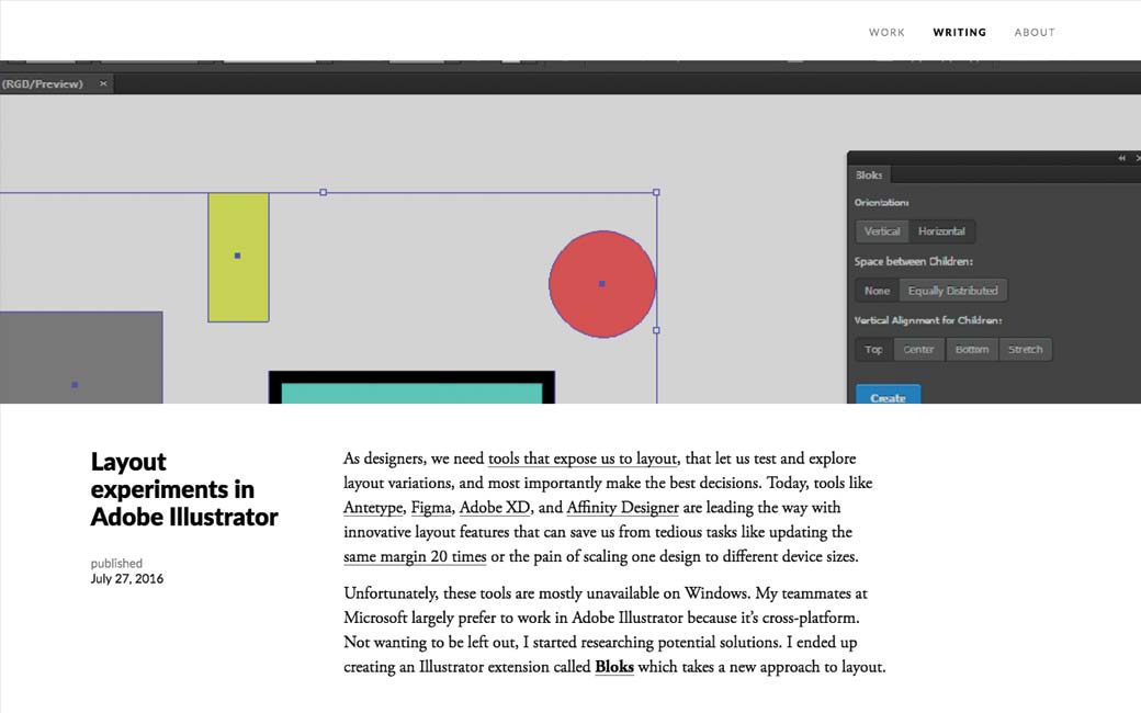 Layout experiments in Adobe Illustrator, un plugin Illustrator qui permet de redimensionner et garder la mise en page de blocs