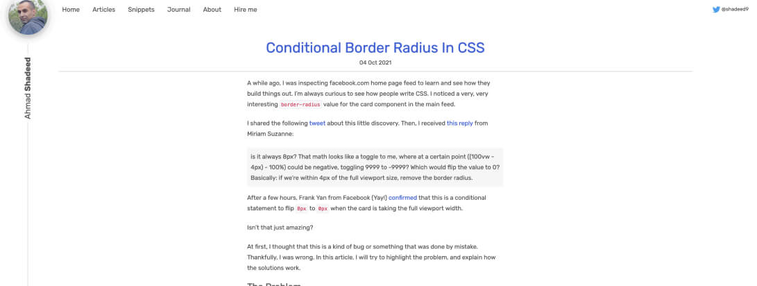 This is a really clever trick using some max, min and calc in CSS to build a conditional border radius in CSS by @shadeed9