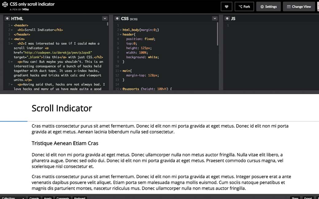 CSS only scroll indicator : très malin, une technique pour faire un indicateur de scroll uniquement en CSS