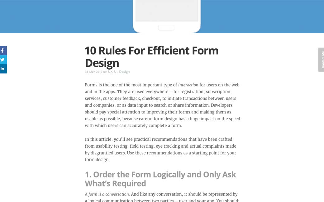 10 Rules For Efficient Form Design, 10 conseils pour le design de vos formulaires mobile