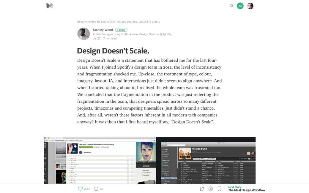 Design Doesn’t Scale de la complexité de maintenir une cohérence graphique dans une interface avec autant de personnes qui travaillent dessus et les méthodes utilisées chez Spotify