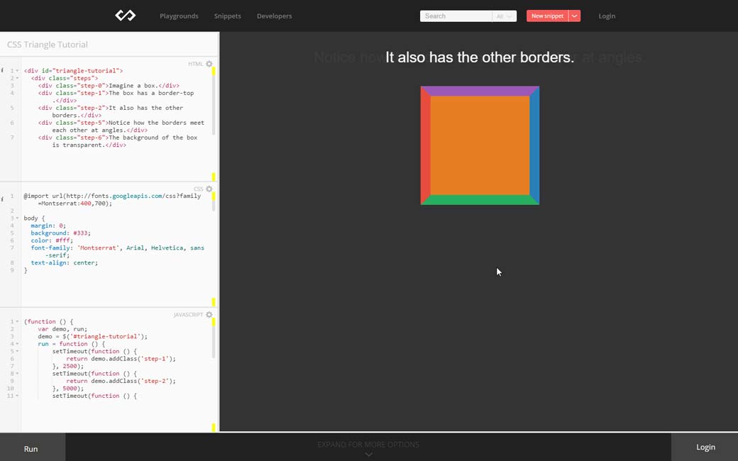 Commes sont créés les triangles CSS, expliqué dans une petite animation