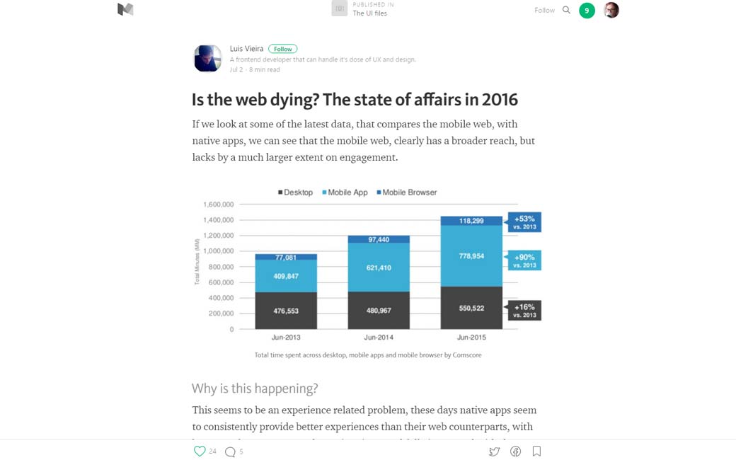 Is the web dying? Le retour du débat web vs natif avec des statts mobiles interessants