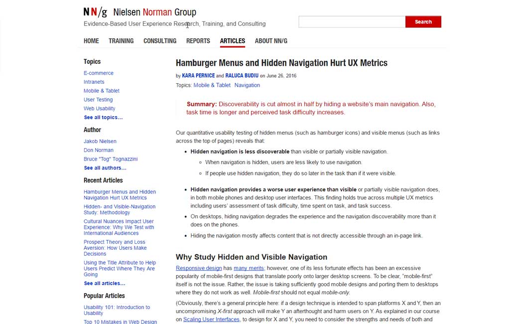 Hamburger Menus and Hidden Navigation Hurt UX Metrics by @NNgroup