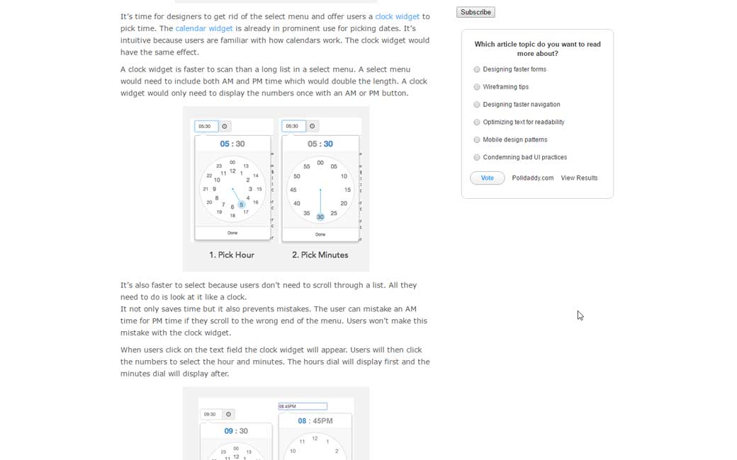 Why a Clock Widget Is Easier for Picking Time un article sur la facilité d’utilisation d’un time picker en forme d’horloge