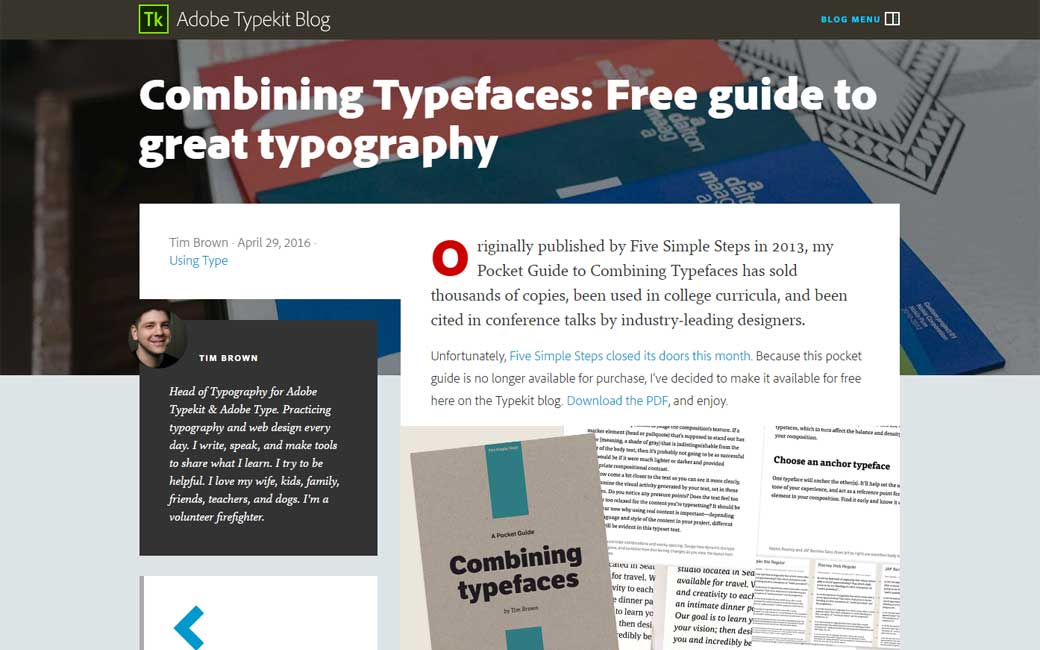 Combining Typefaces: Free guide to great typography, l’ebook de 5simple steps sur la combinaison de fonts est disponible gratuitement en PDF.