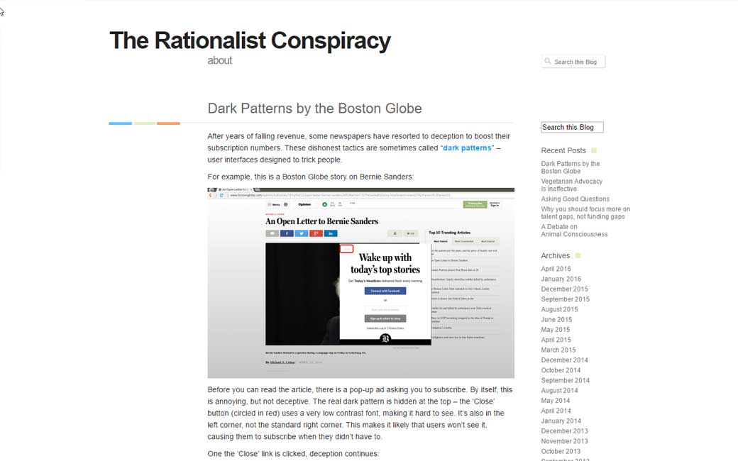 Lecture intéressante sur les Dark Patterns au Boston Globe : Dark Patterns by the Boston Globe