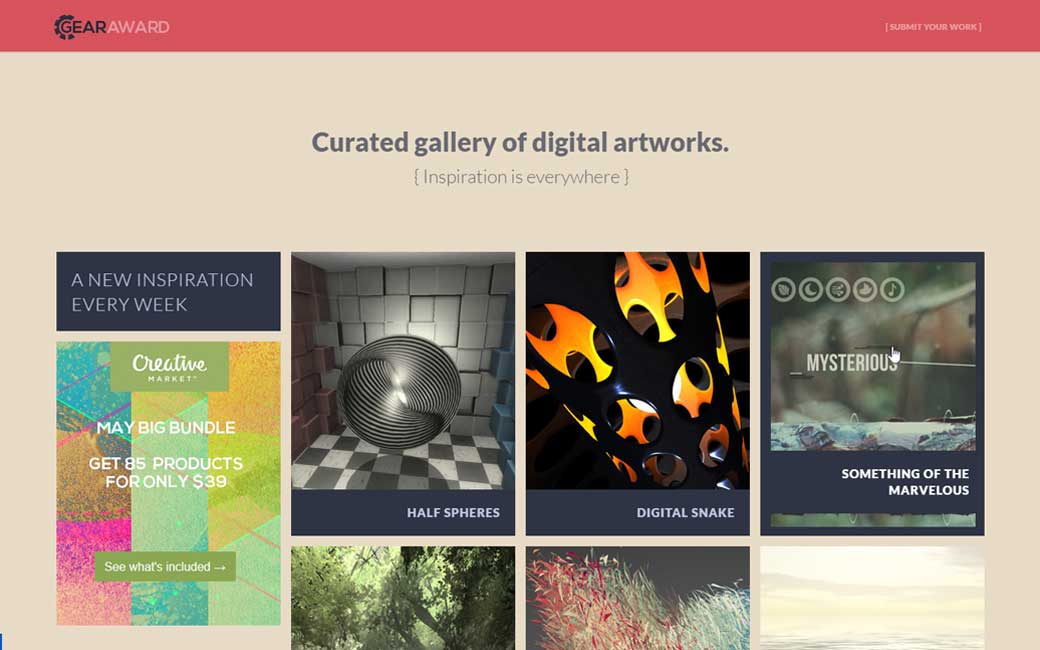Gearaward.com, une galerie d’artwork créés à partir de code, je suis une grande fan de l’aquarium