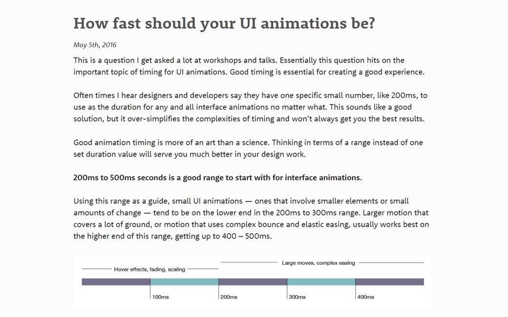 How fast should your UI animations be? TLDNR 200ms to 500ms seconds