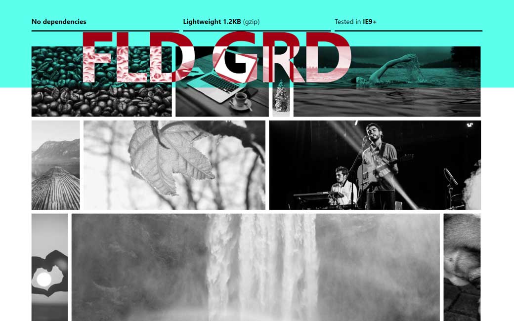 Google Images inspired fluid grid layouts, une grille fluide inspirée de Google image. L’effet de blend mode sur le titre est également bien sympa.
