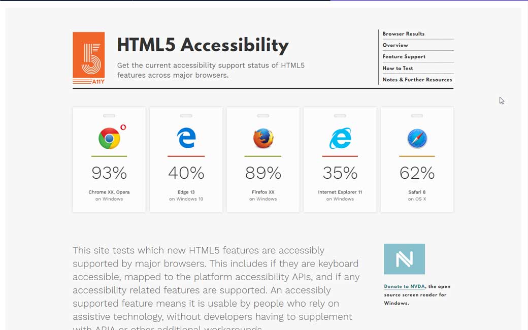 HTML5 Accessibility, le support de l’accessibilité des différents éléments HTML5 dans les navigateurs