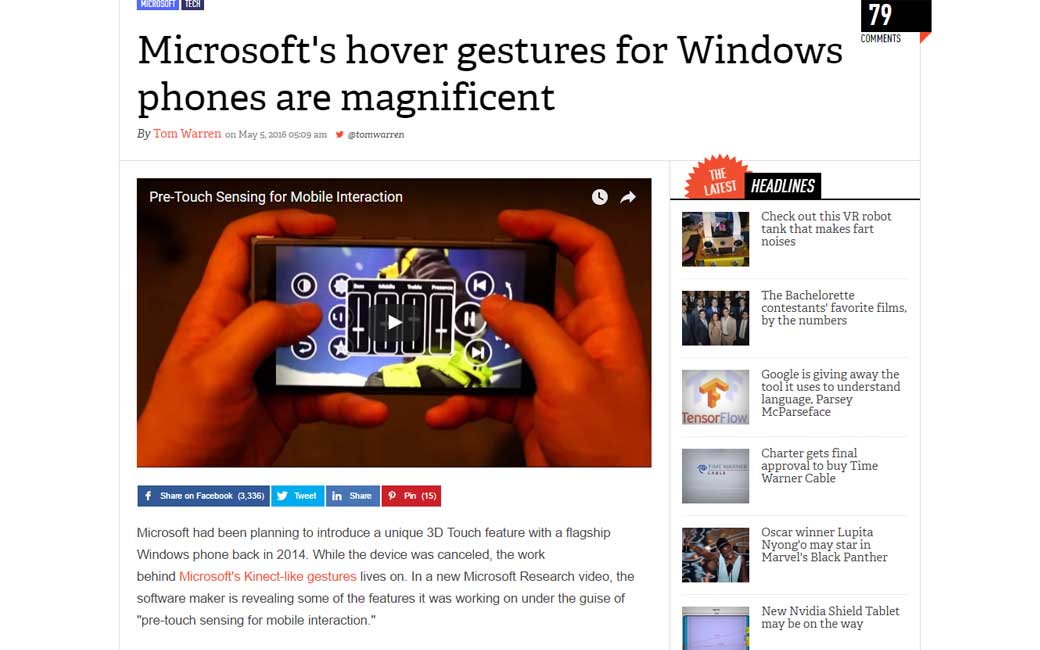 Microsoft’s hover gestures for Windows phones are magnificent, ça risque d’être un peu le bazar niveau sites mobiles, mais ça a l’air carrément prometteur