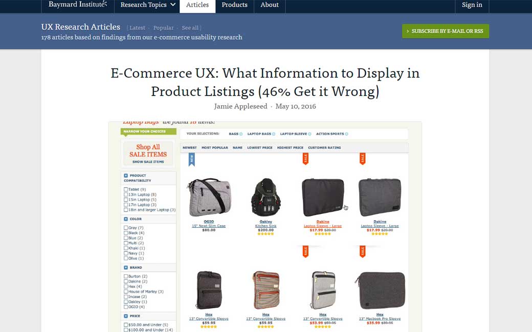 E-Commerce UX: What Information to Display in Product Listings (46% Get it Wrong), quelles informations sont à faire figurer sur une liste de produits