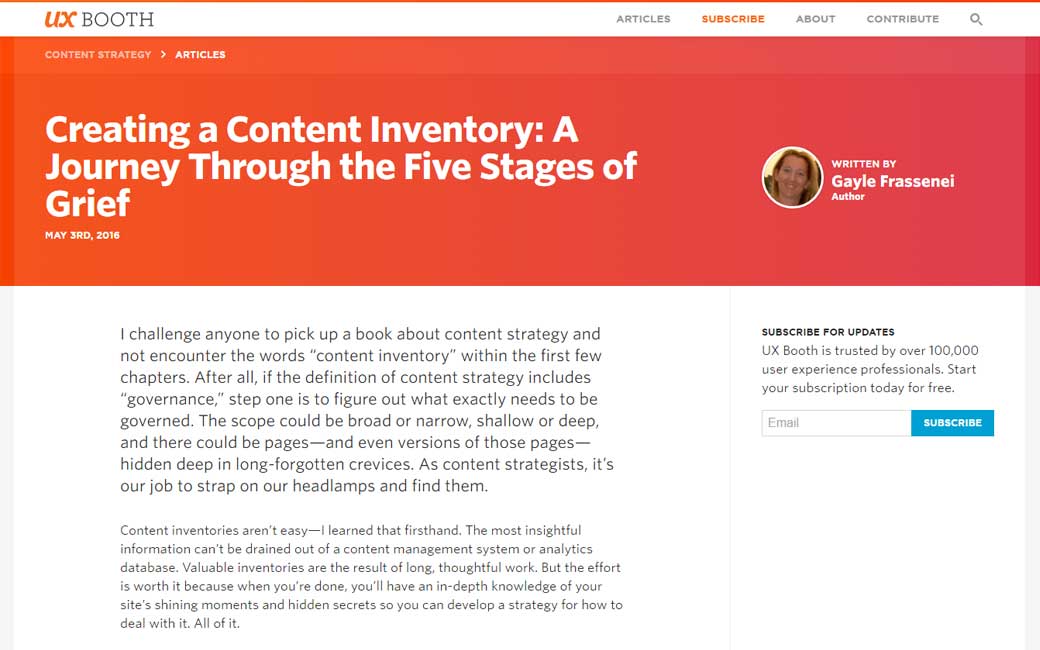 Creating a Content Inventory: A Journey Through the Five Stages of Grief, excellente lecture sur la création d’un inventaire de contenus