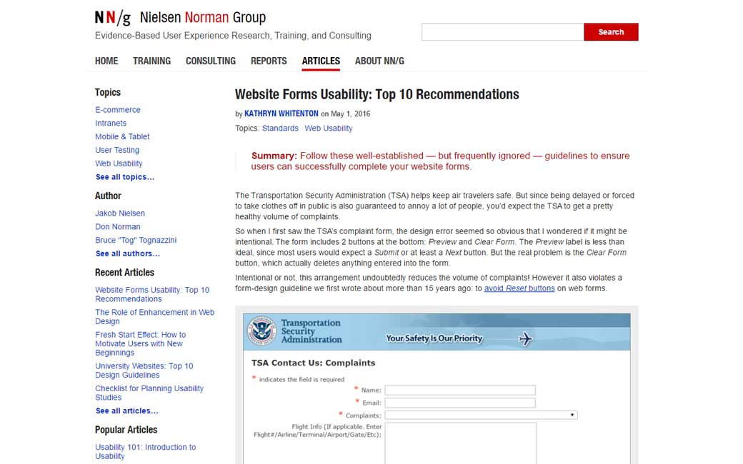 Website Forms Usability: Top 10 Recommendations, 10 recommandations pour le design de formulaires utilisables
