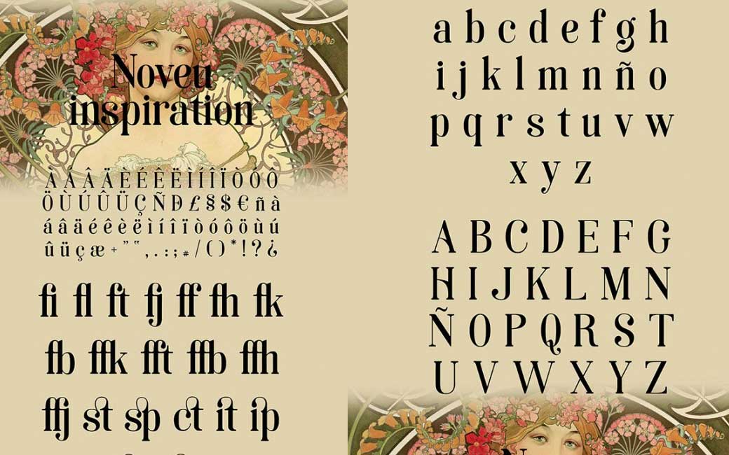 Soria: A free font inspired by Art Nouveau, une jolie serif avec de belles ligatures
